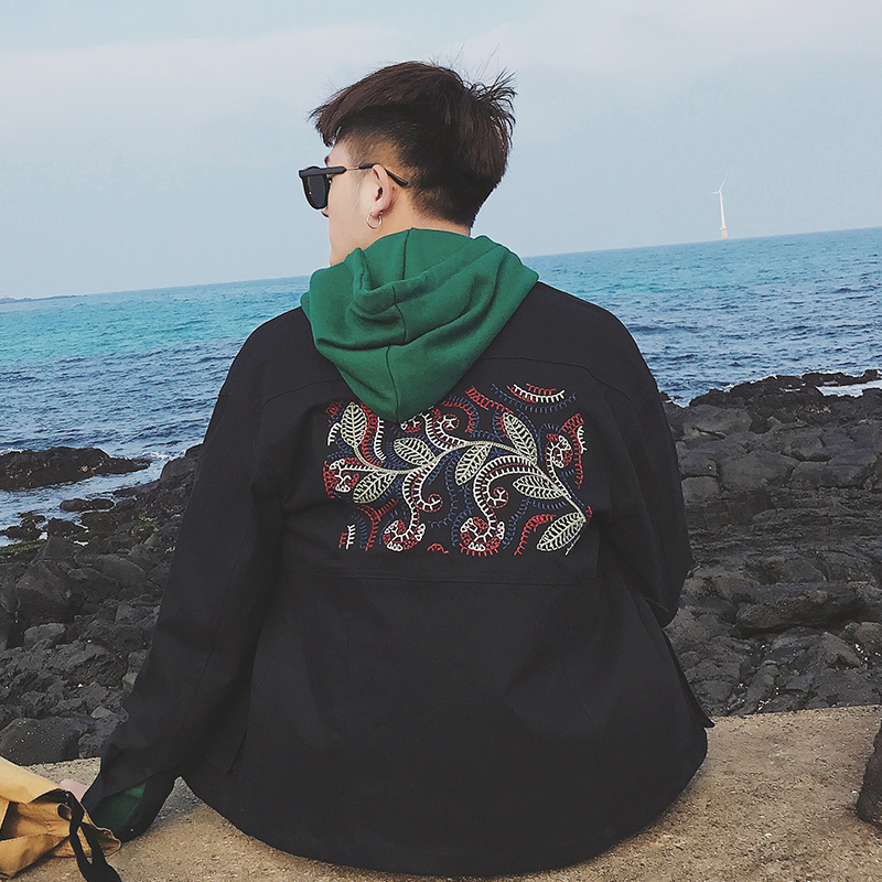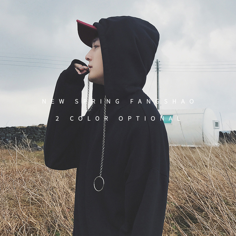 男裝韓版鐵環鏈子裝飾連帽寬..