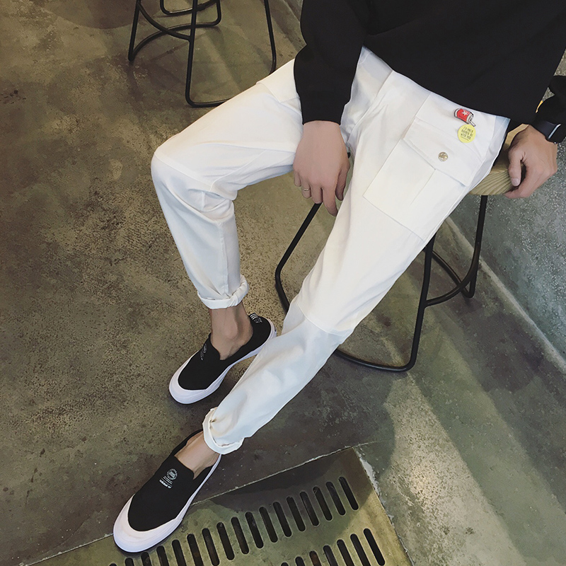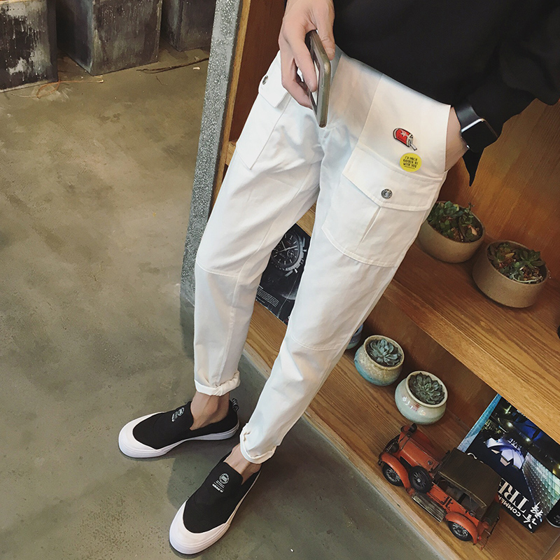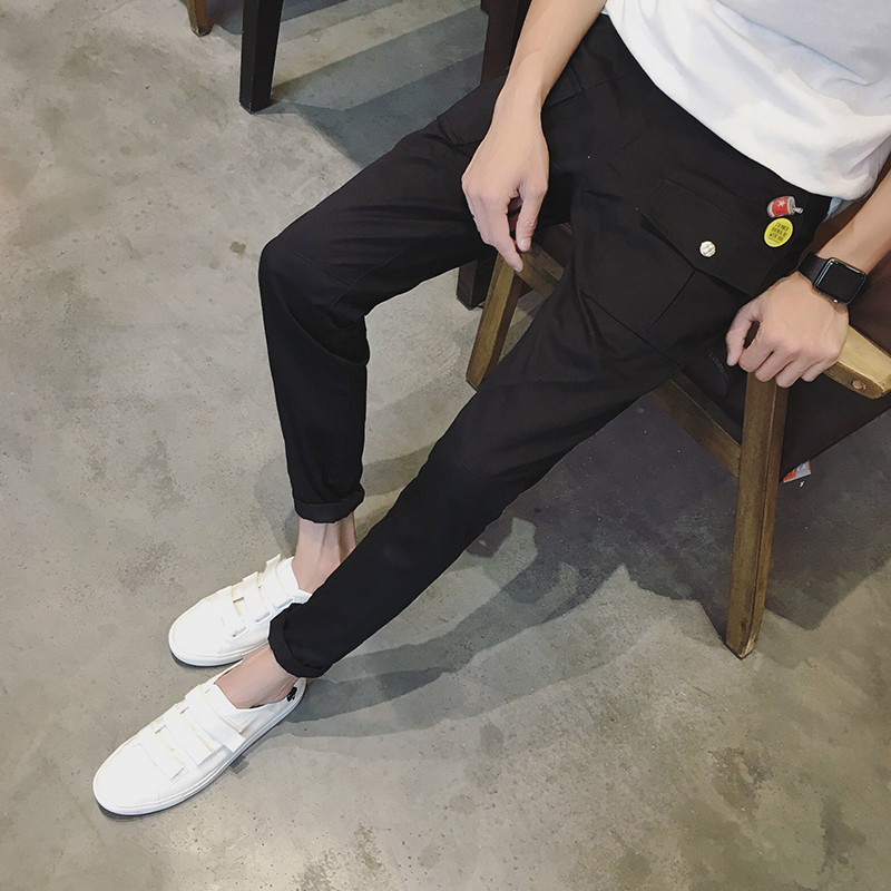 / 反季特價可拆徽章潮男修身小腳多口袋休閑褲秋