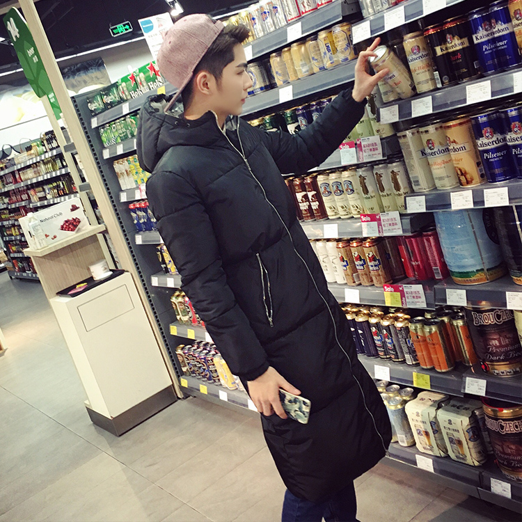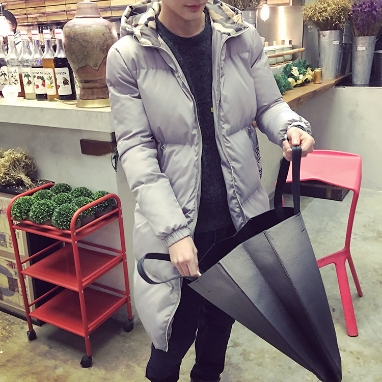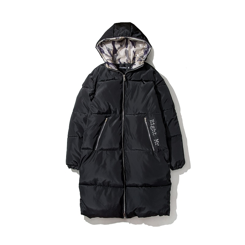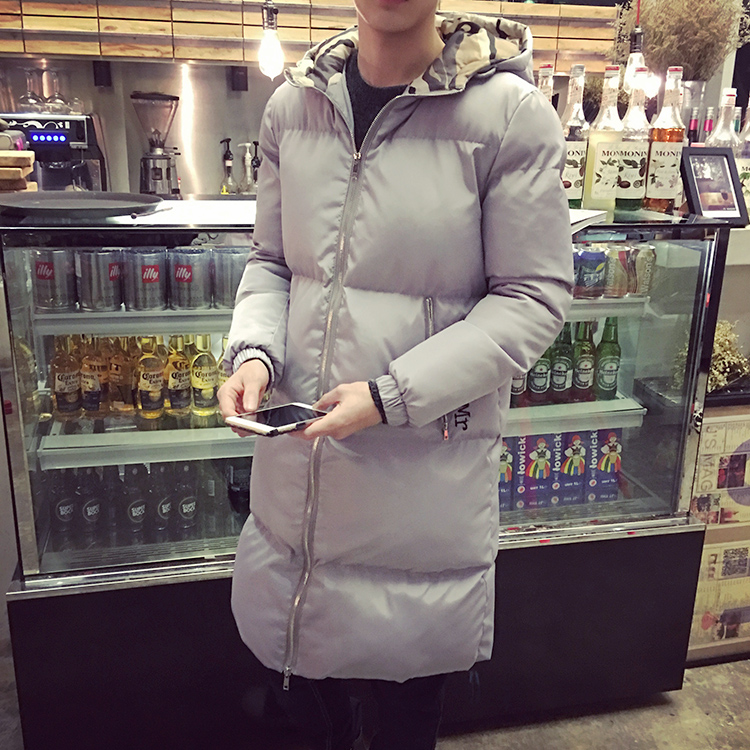 / 男裝迷彩拼接繡花棉服韓版加厚男士連帽長款棉衣潮