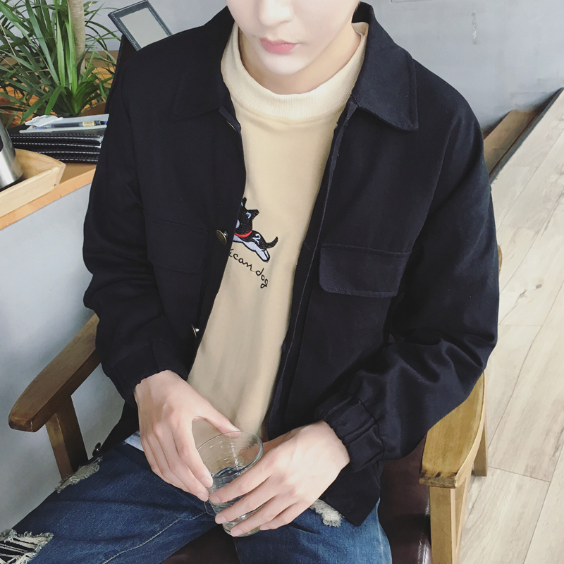 春裝新款韓版大口袋單排扣短款翻領男士夾克外套