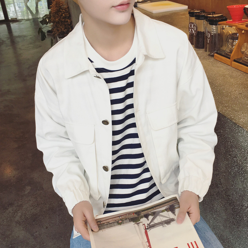 / 春裝新款韓版大口袋單排扣短款翻領男士夾克外套