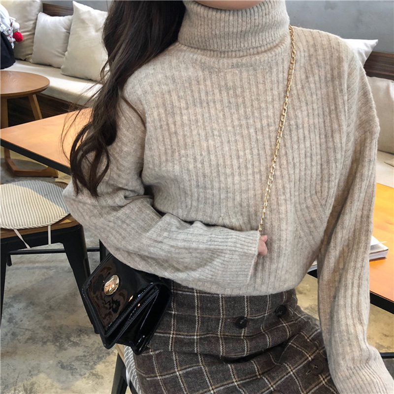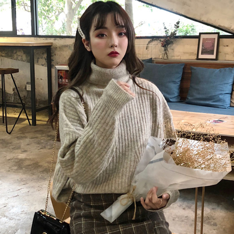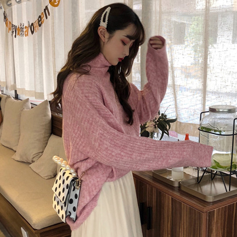 寬松加厚高領毛衣女秋冬裝2018新款學生慵懶針織外套時尚長袖上衣