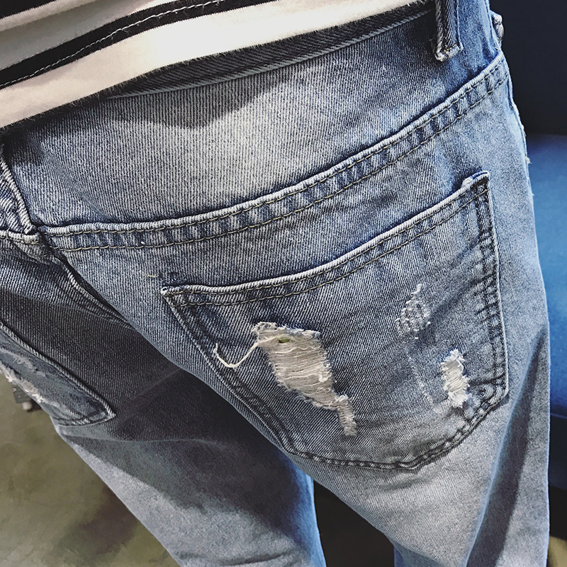男裝韓版破洞牛仔九分褲男士修身小腳褲牛仔褲男褲