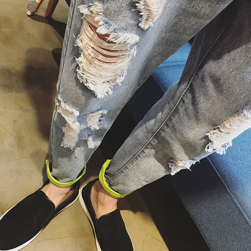 / 男裝韓版破洞牛仔九分褲男士修身小腳褲牛仔褲男褲