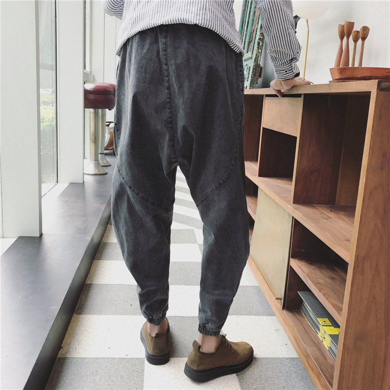 男裝韓版吊襠哈倫褲錐形小腳褲男士冬季復古牛仔褲