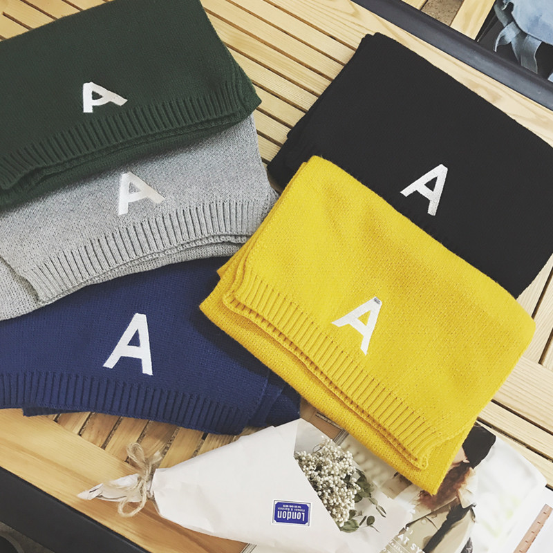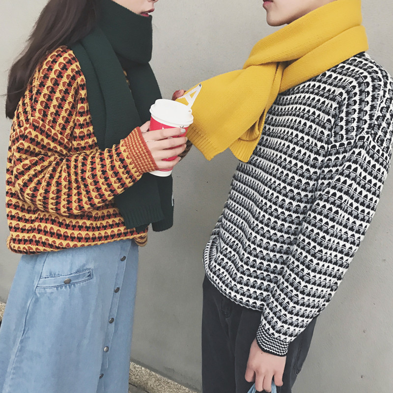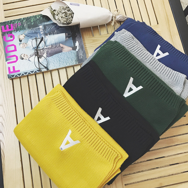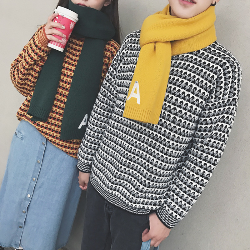 男裝韓版小清新字母情侶毛線圍巾男女針織撞色圍巾