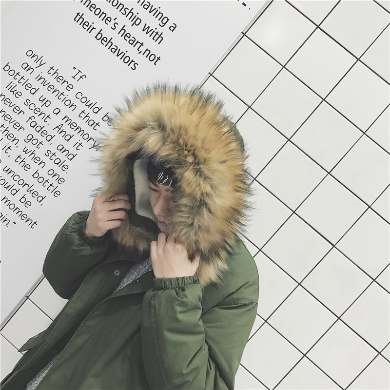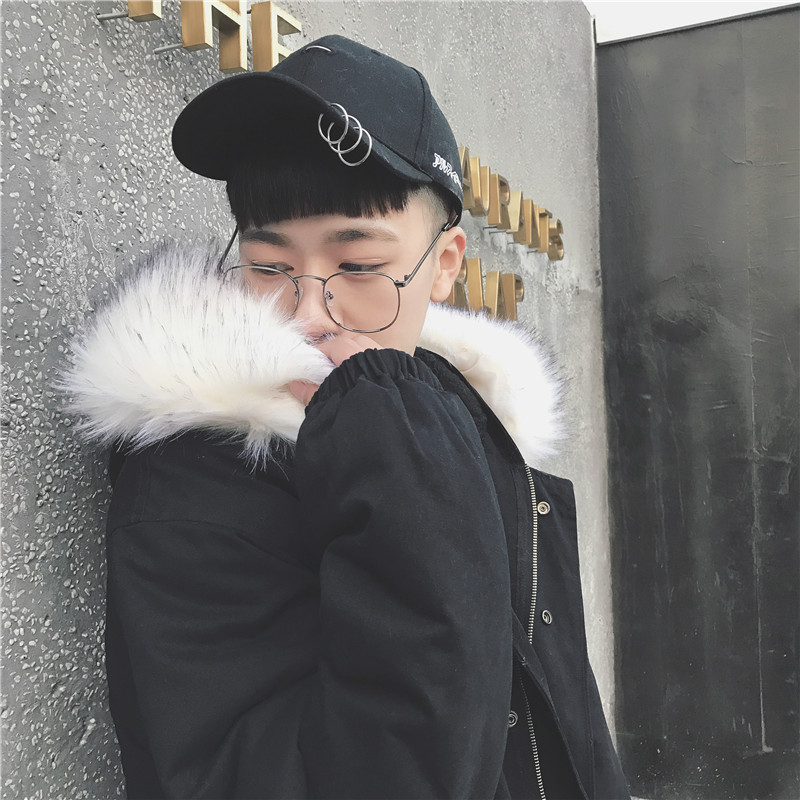/ 男裝港系大毛領男士中長款寬松加厚棉服棉衣外套潮