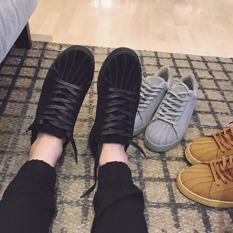 男裝經典百搭款磨砂翻毛皮男士低幫板鞋休閑鞋潮鞋