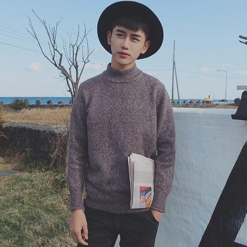 男裝韓版半高領男士加厚修身套頭針織衫毛衣外套