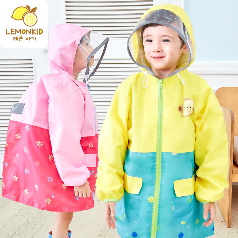 韓國lemonkid秋冬新兒童雨衣環保無味大帽檐帶書包位男女學生雨衣
