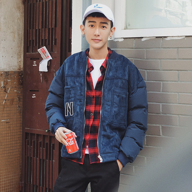 新款冬裝韓版麂皮絨字母貼布手塞棉寬松男士棉衣
