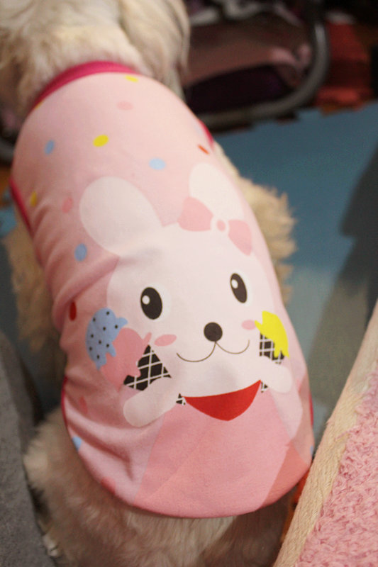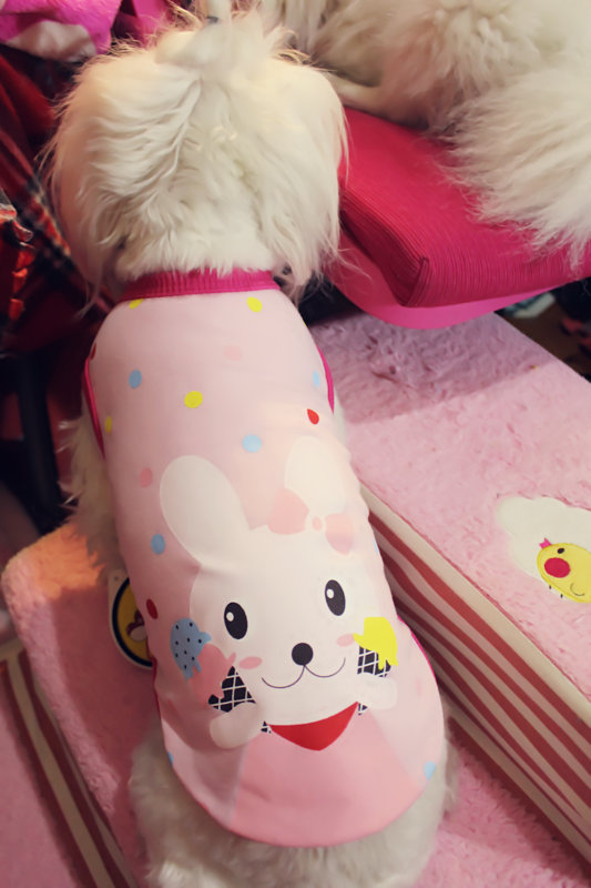 舒適的T恤!!每個孩子必備一件的款式哦~~哈哈哈哈這個價格很實惠~~而且兔子萌萌噠~~小丸子很喜歡這個簡單的小背心!可以讓狗狗在空調房穿也可以春夏穿出去防蟲叮咬!!總之簡單舒適的小T值得入手!~