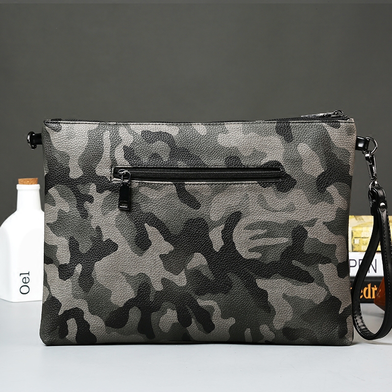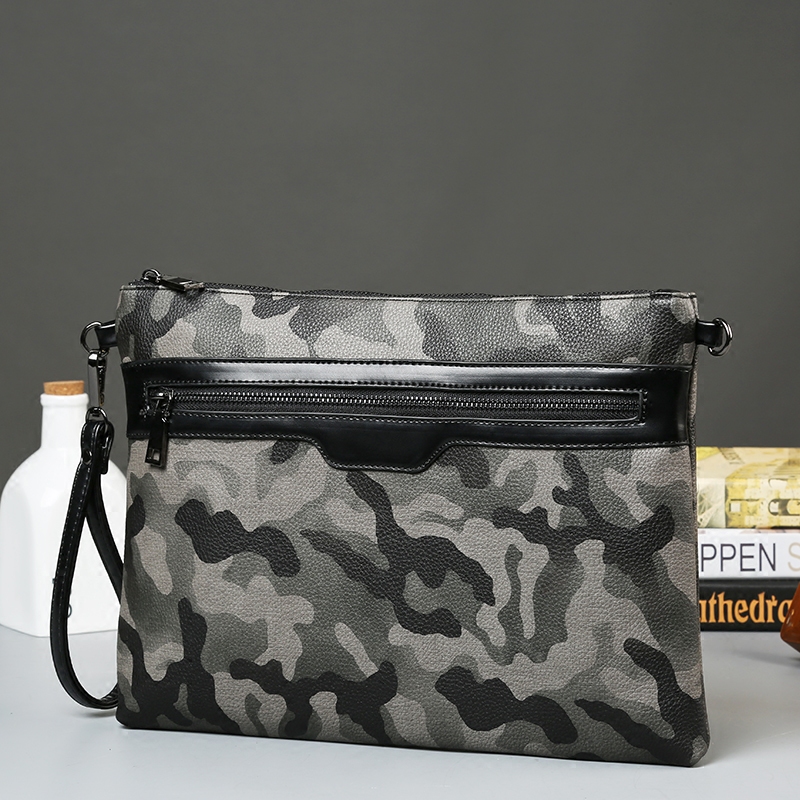 男士手包男包大容量迷彩PU皮手拿包手抓包夾包韓版單肩斜跨包休閑