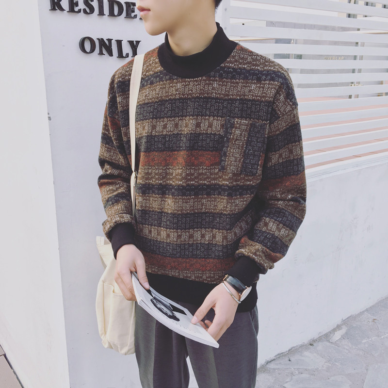 男裝韓版小清新撞色圓領套頭男士衛衣寬松多彩衛衣