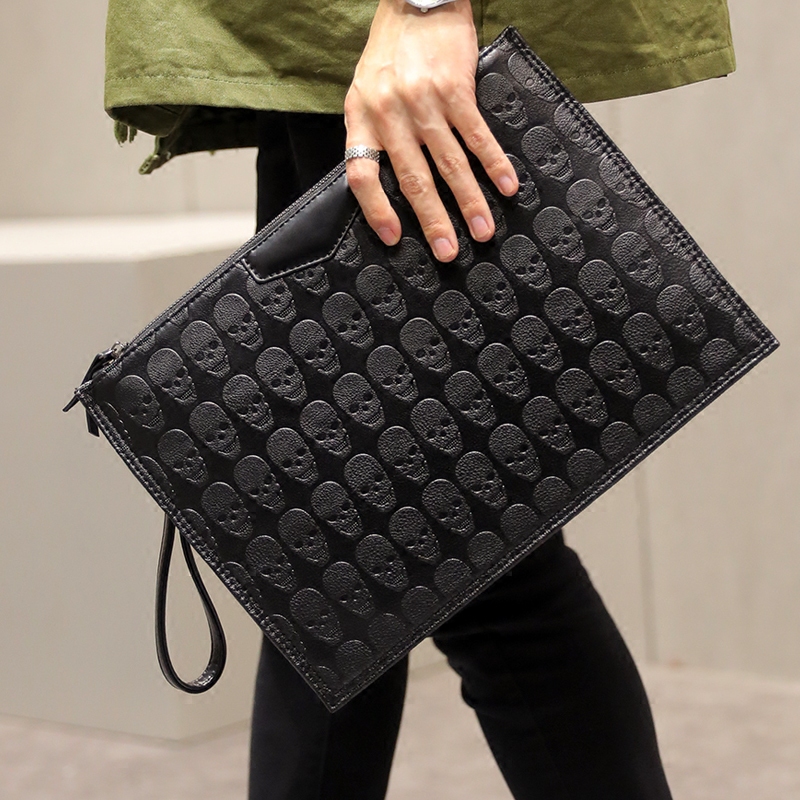 / 潮流時尚鬼頭男士手拿包韓版男士新款手包信封包單肩斜跨包