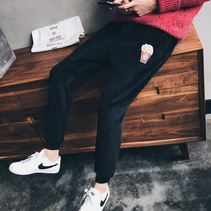 男裝卡通薯條小直腳寬松男裝哈倫褲加厚運動衛褲