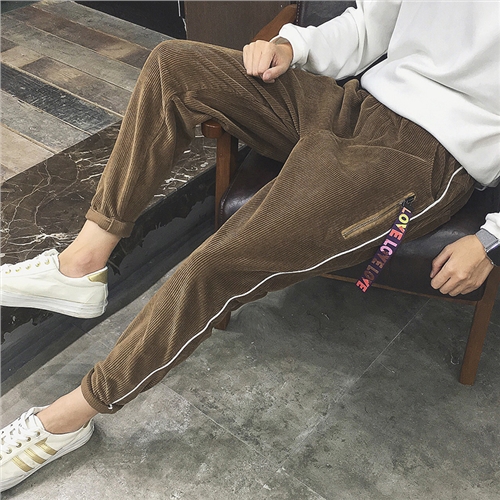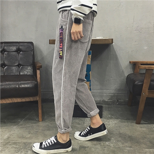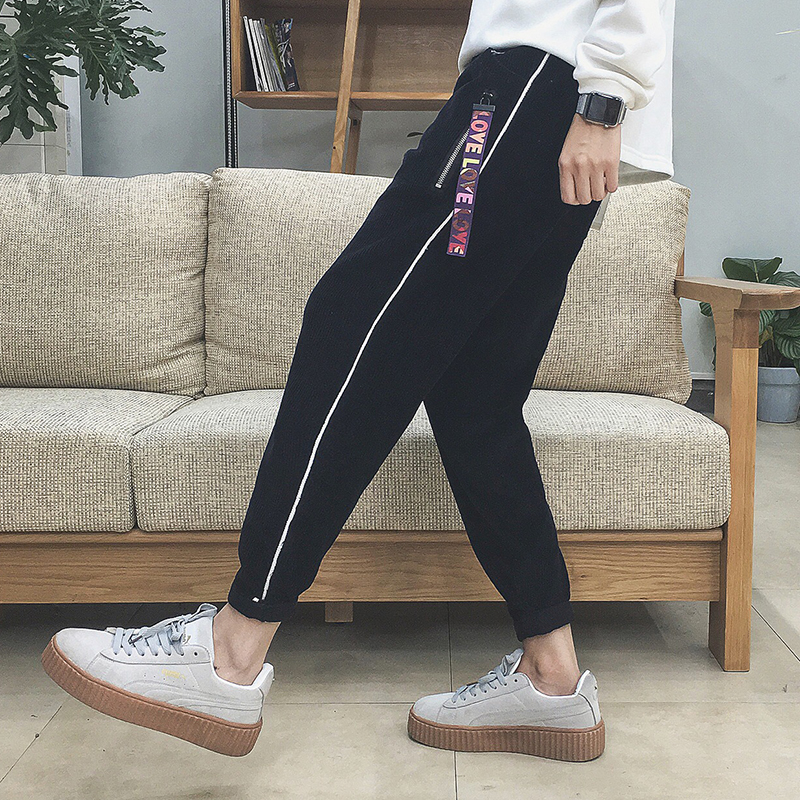 / 男裝裝飾掛件燈芯絨加厚男士哈倫褲錐形寬松休閑褲