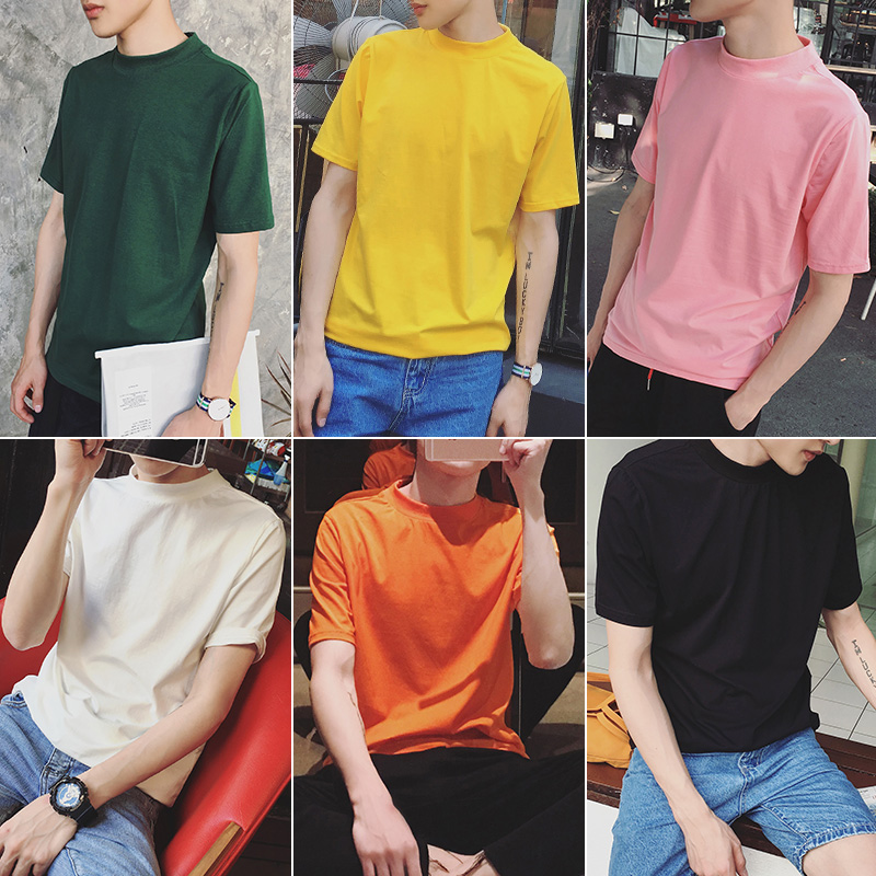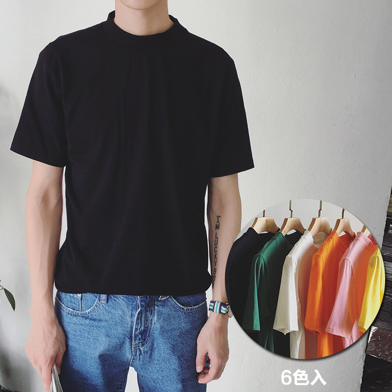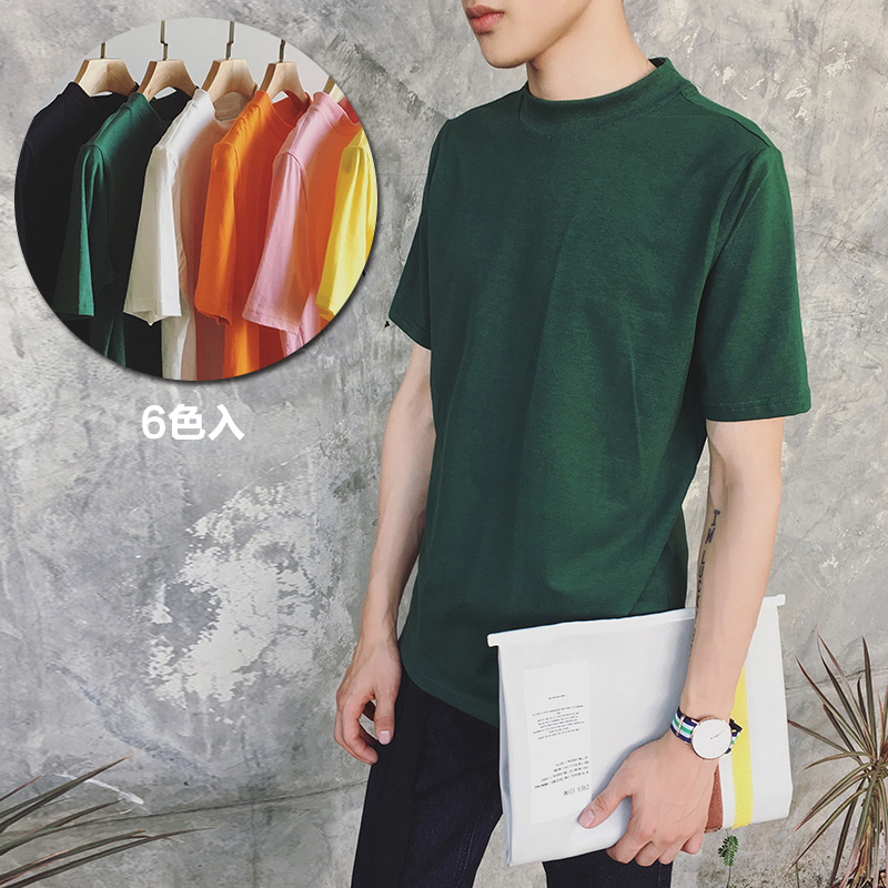 / 日韓高領短袖t恤男印花圓領寬松版百搭純色短袖T恤