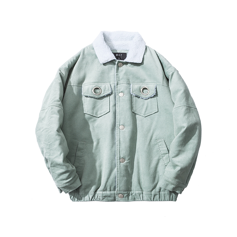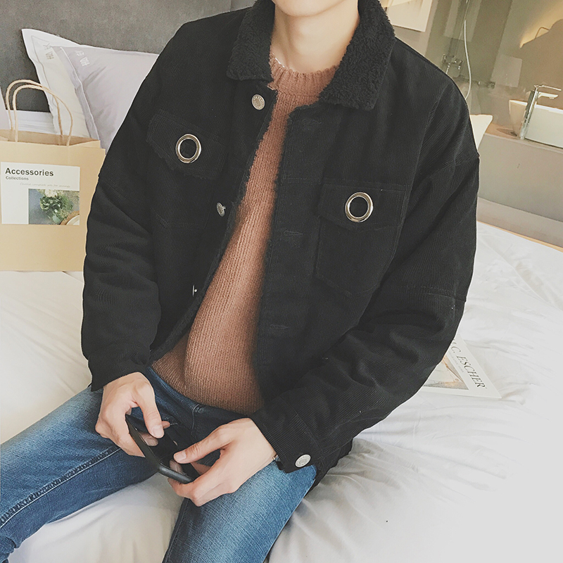 新款冬裝羊羔毛內里寬松水洗燈芯絨男士棉衣外套