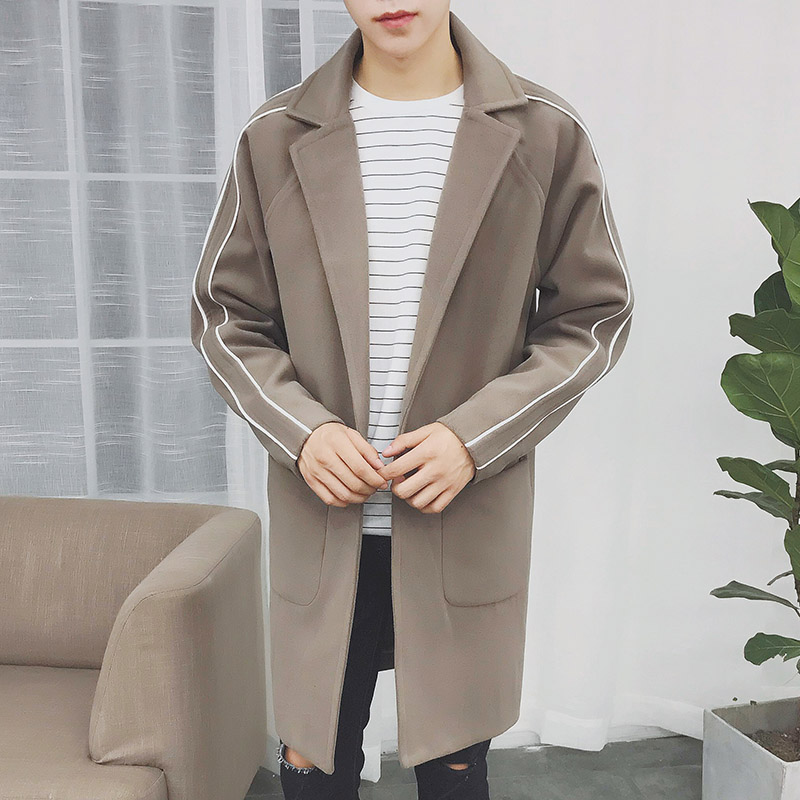 男裝韓版原創拼色單排扣呢料外套休閑男士寬松風衣