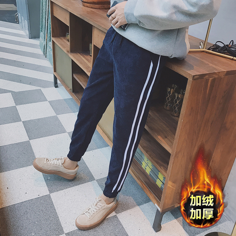 / 男裝港風拼色韓版修身小直腳男士錐形燈芯絨休閑褲