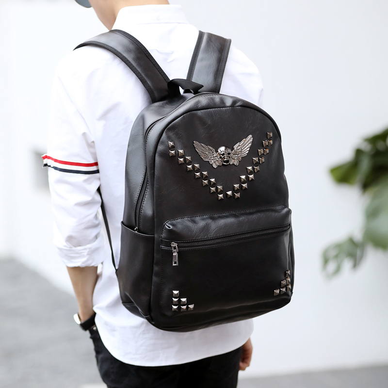 / 潮流男士時尚皮質背包個性鉚釘鬼頭雙肩包休閑學生書包電腦包