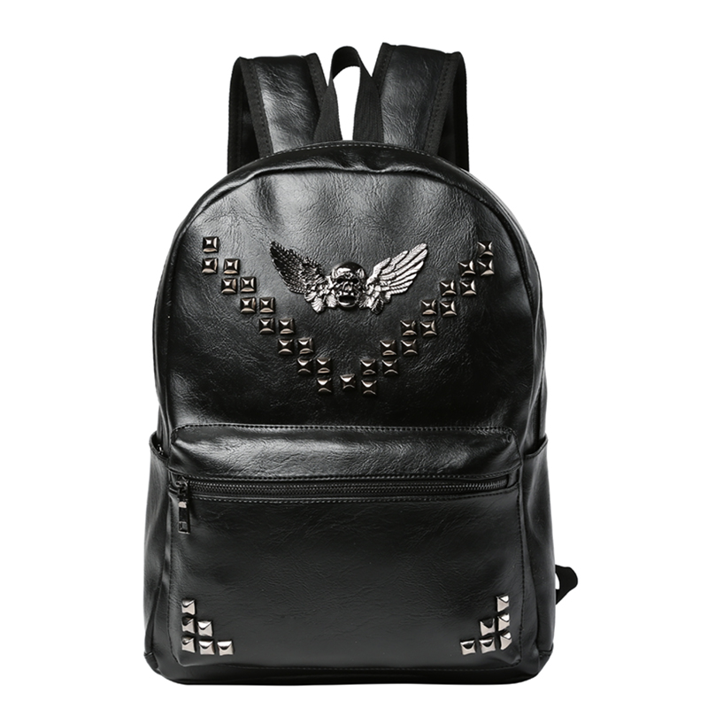 潮流男士時尚皮質背包個性鉚釘鬼頭雙肩包休閑學生書包電腦包
