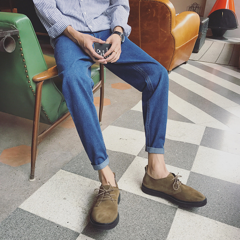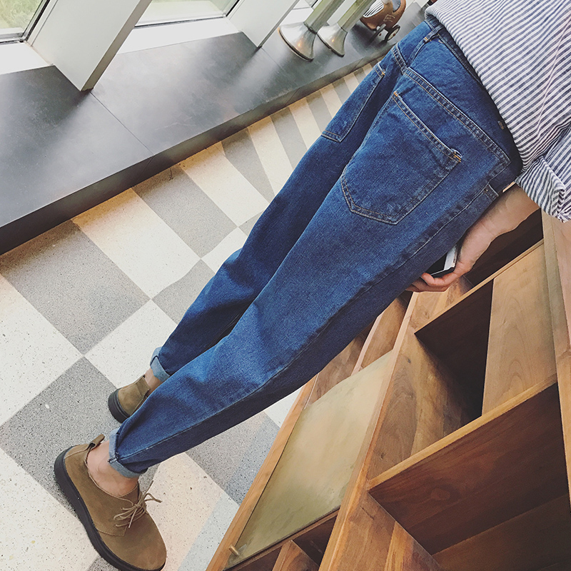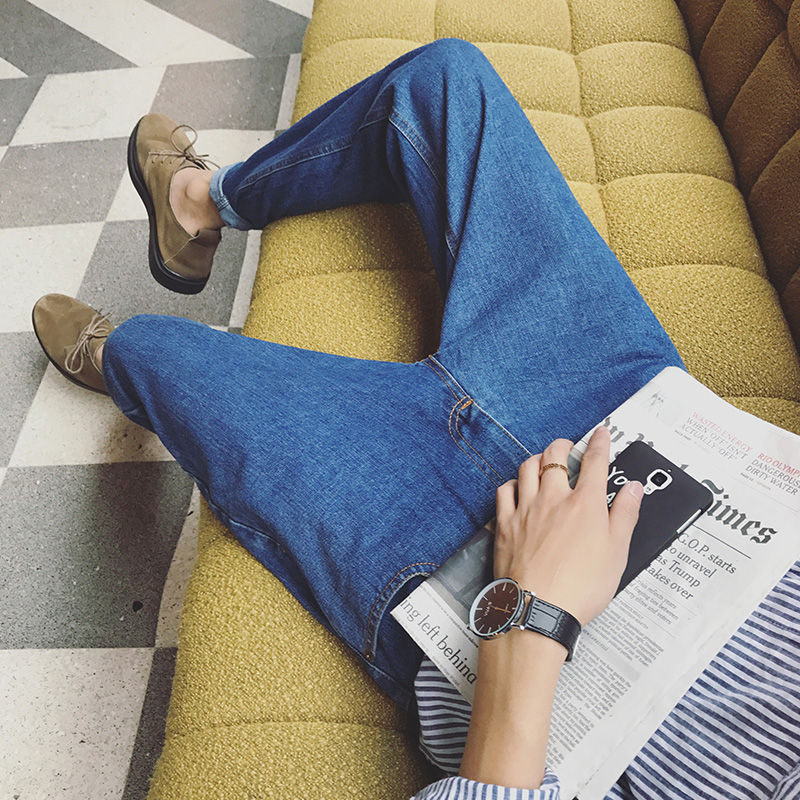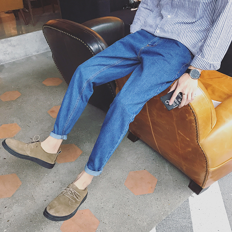 / 男裝韓版簡約百搭純色男士修身小腳牛仔褲水洗男褲