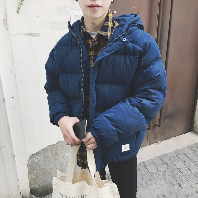 男裝日系復古簡約面包服韓版男士加厚連帽寬松棉衣