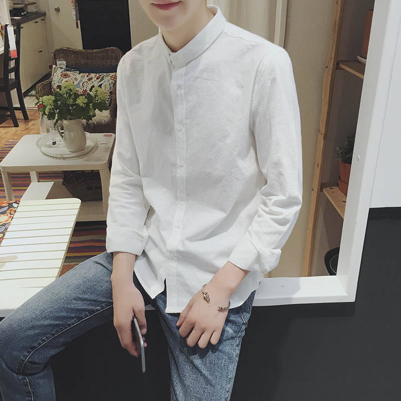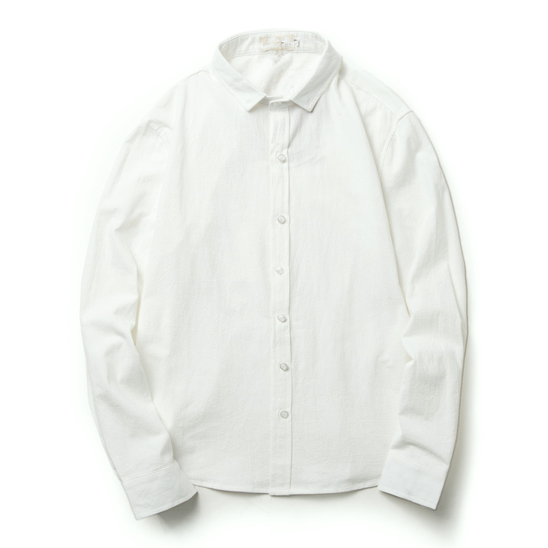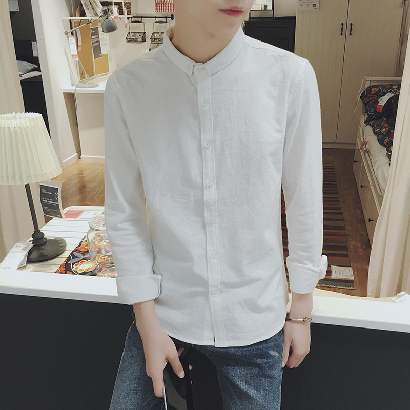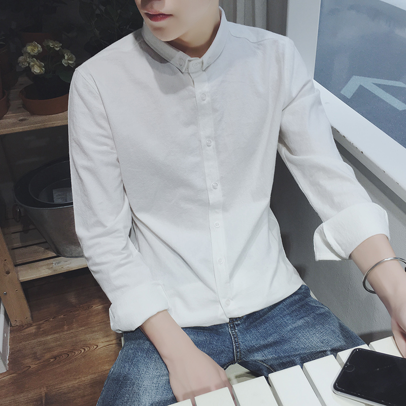 / 男裝韓版純色修身尖領男士白色長袖襯衫大碼男襯衣