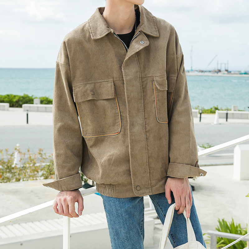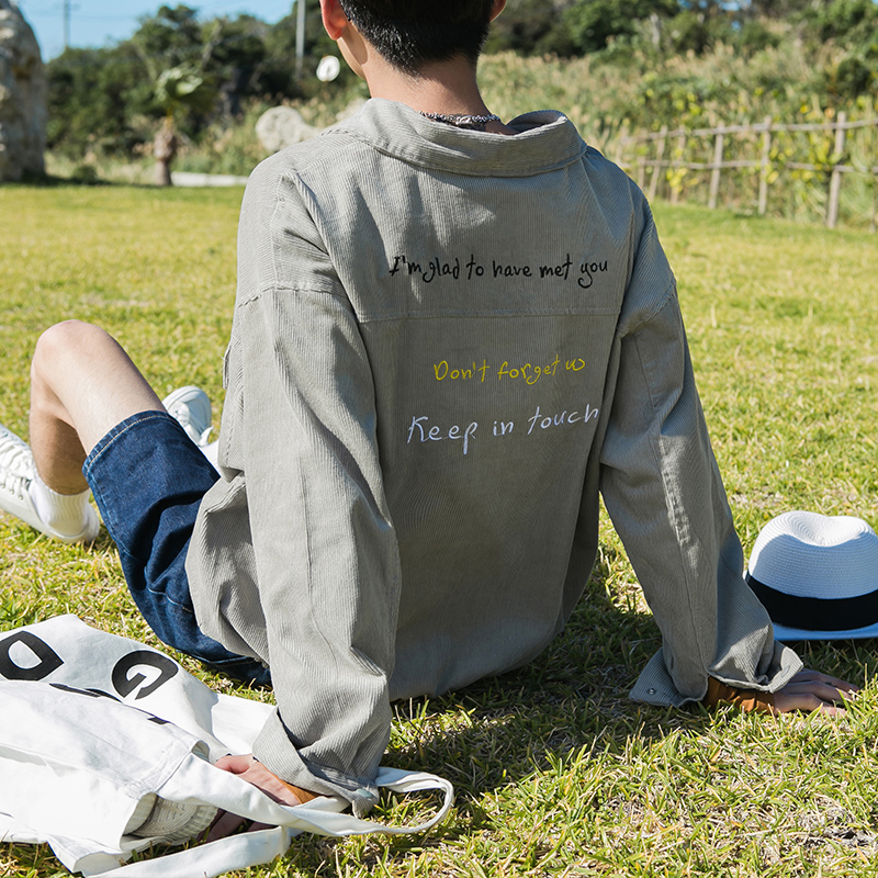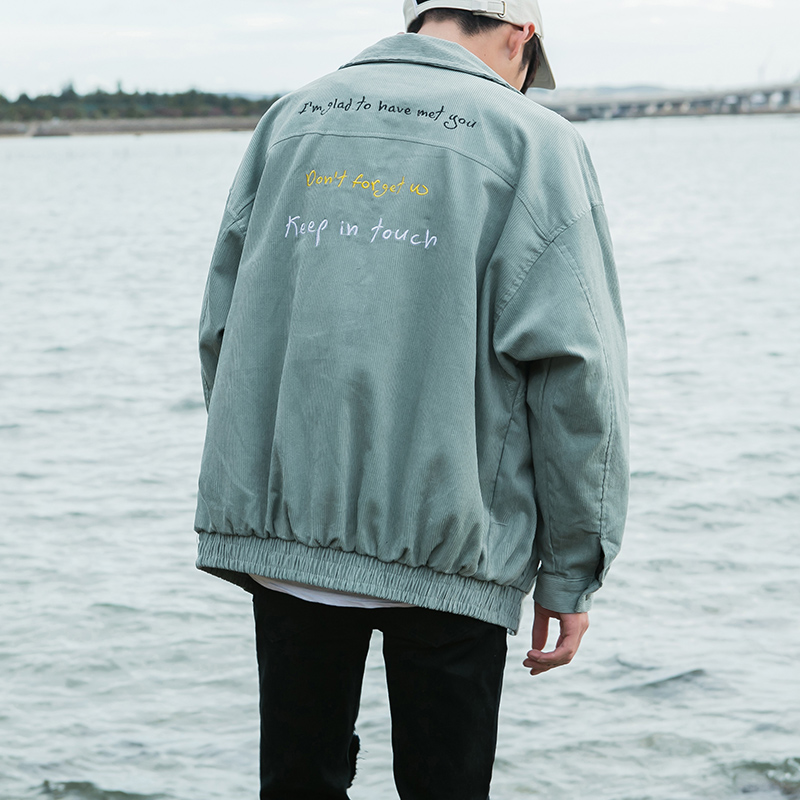 男裝字母刺繡背后韓版男士燈芯絨薄款開衫夾克外套