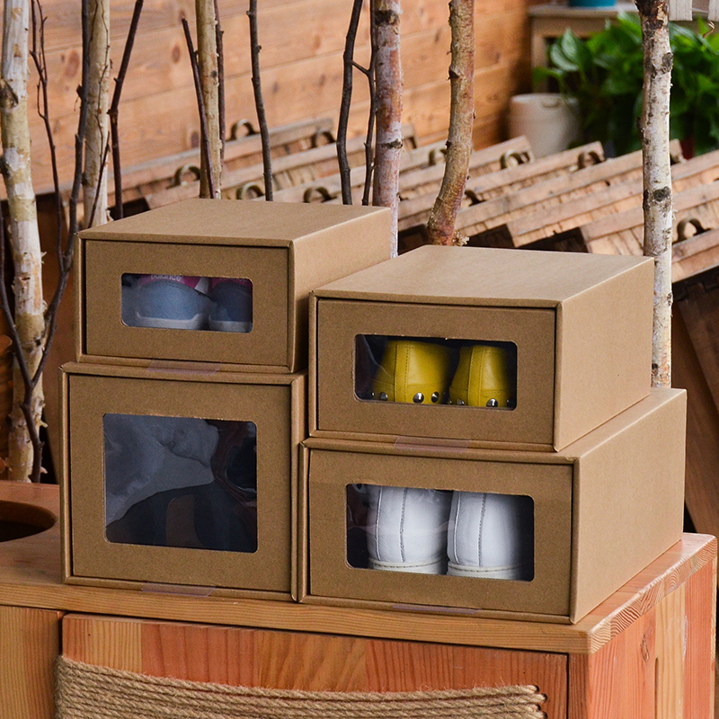 加厚抽屜鞋盒透明鞋盒男女抽屜式鞋子收納盒牛皮紙紙鞋盒
