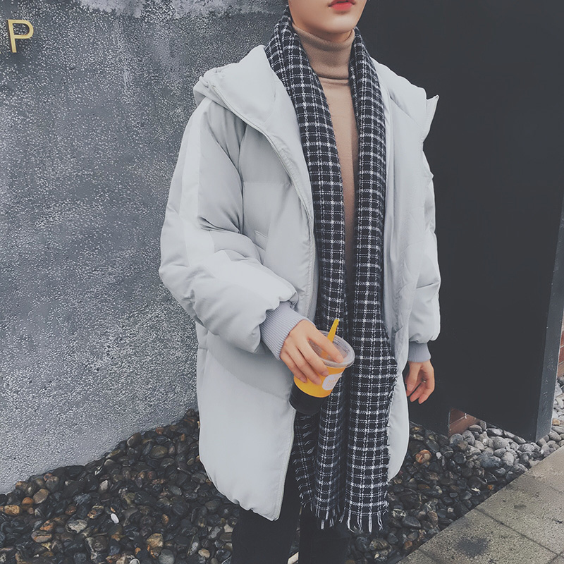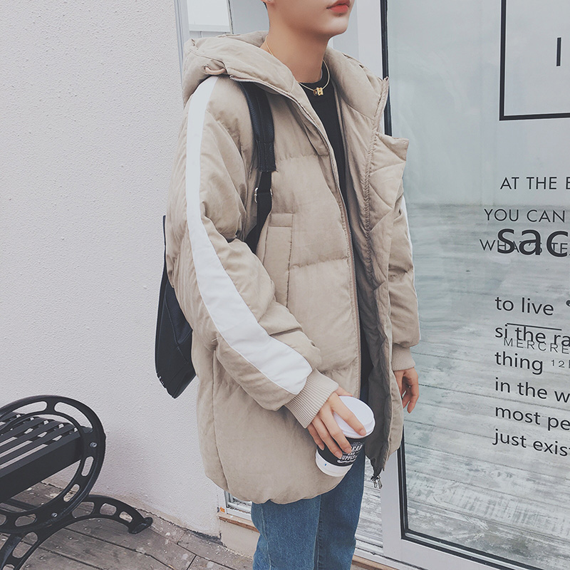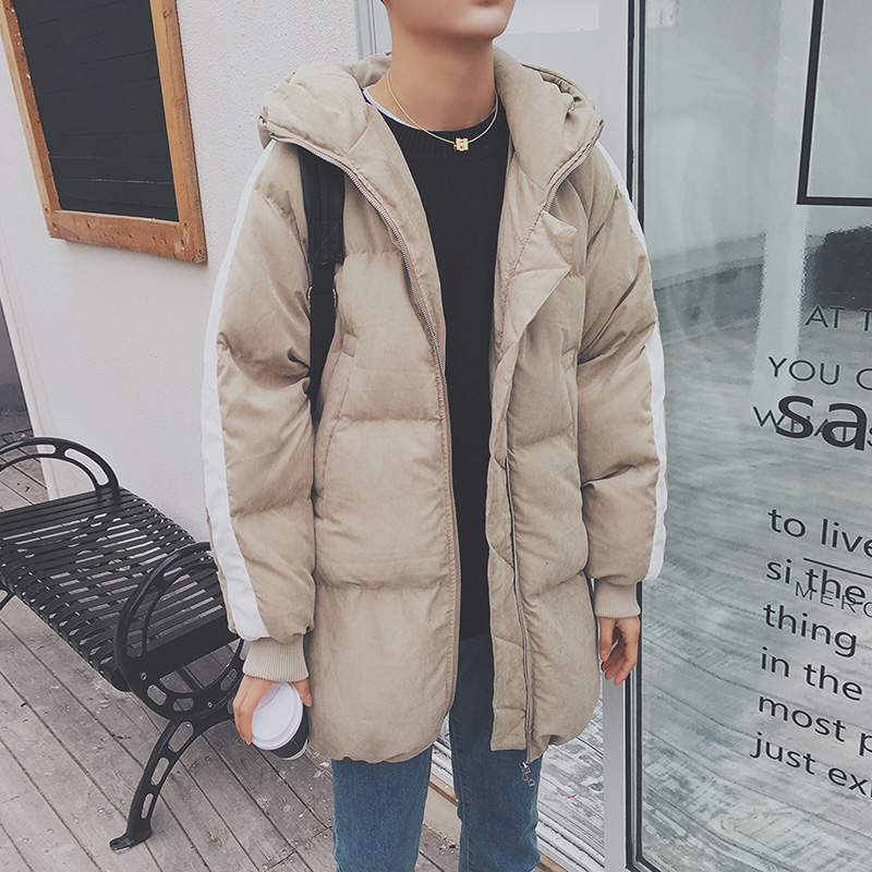 男裝港風袖子撞色中長款外套韓版男士加厚連帽棉衣