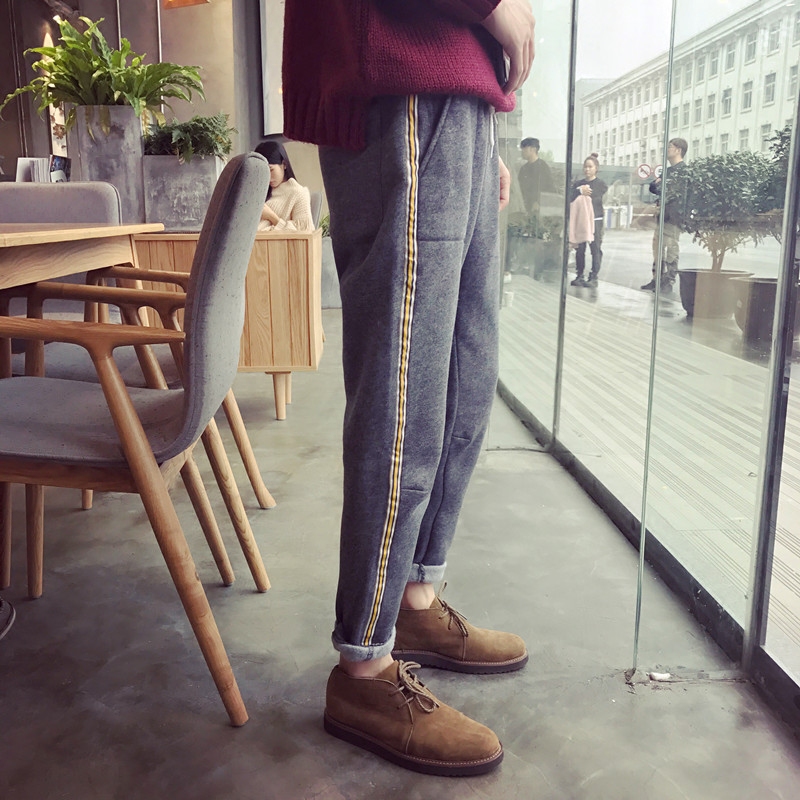 / 男裝韓版貼條加厚抓絨運動褲男士小腳哈倫褲衛褲潮