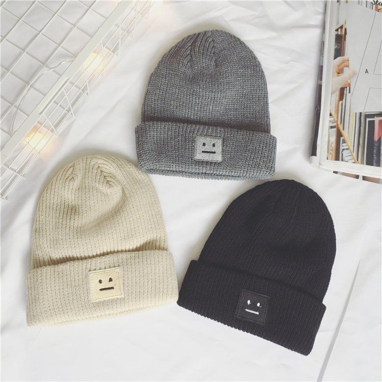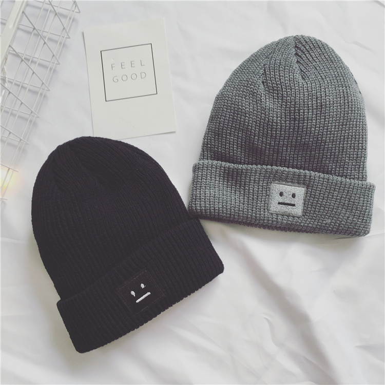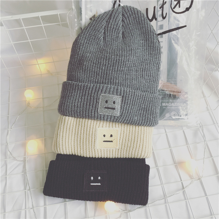新款男裝韓版時尚百搭東大門情侶笑臉毛線帽子針織