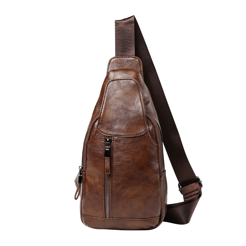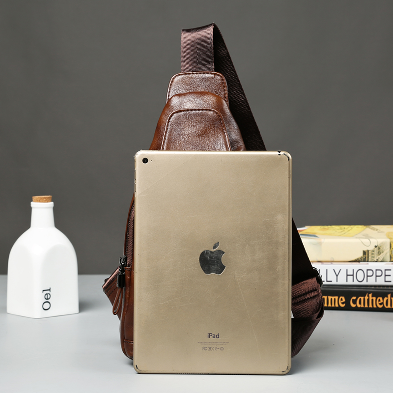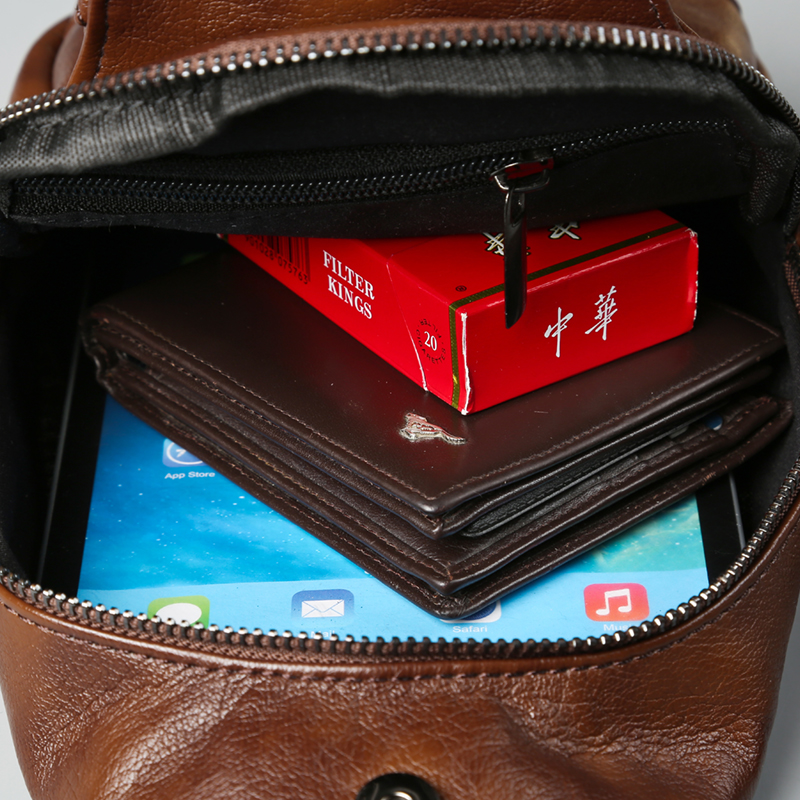 軟皮復古男士單肩斜挎包胸包男韓版腰包運動休閑騎行背包胸前男包