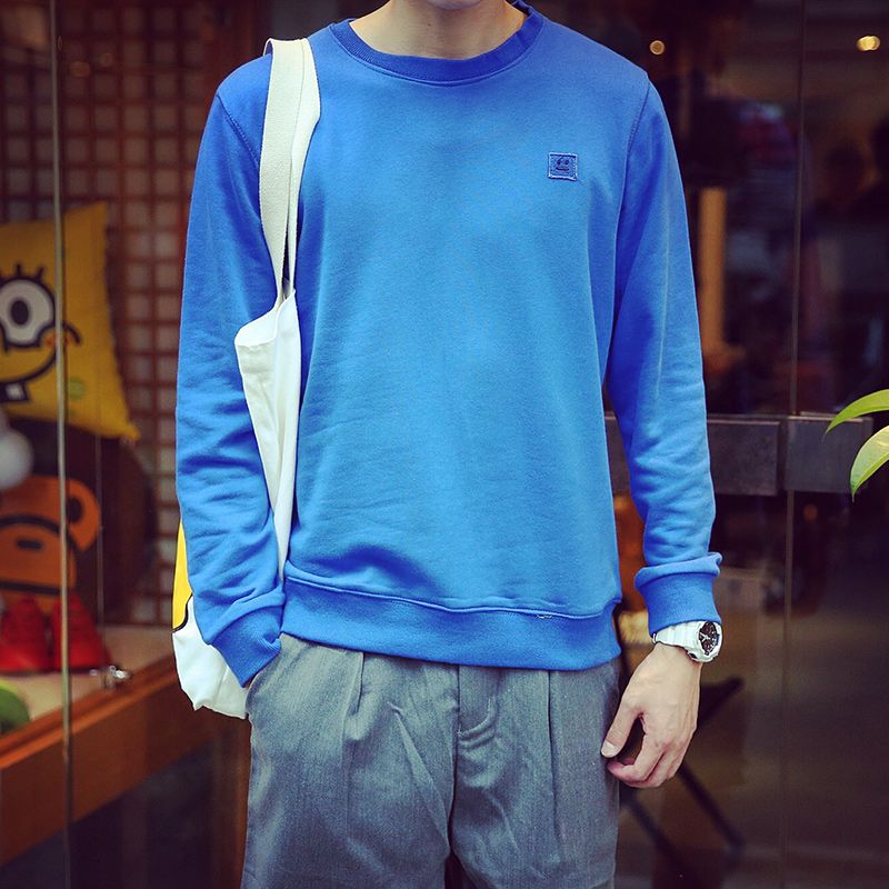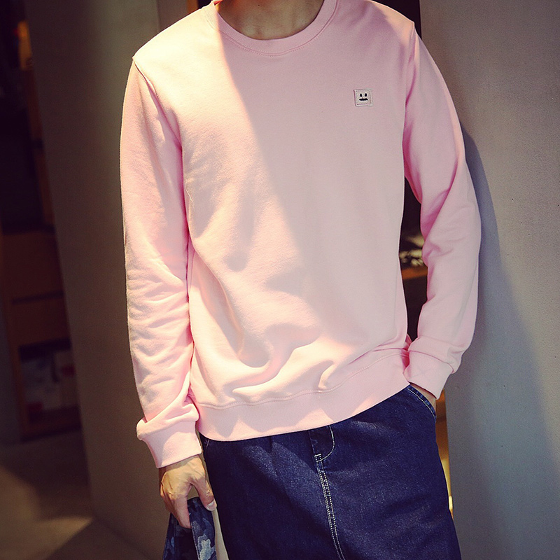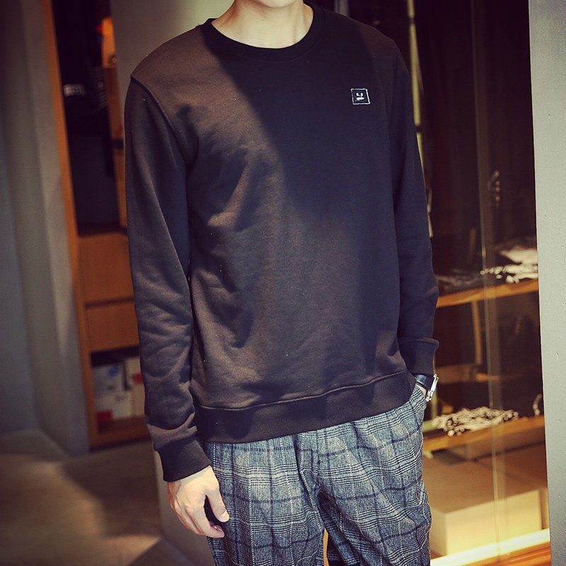 金冠原創設計笑臉韓版修身純色男士百搭套頭衛衣潮