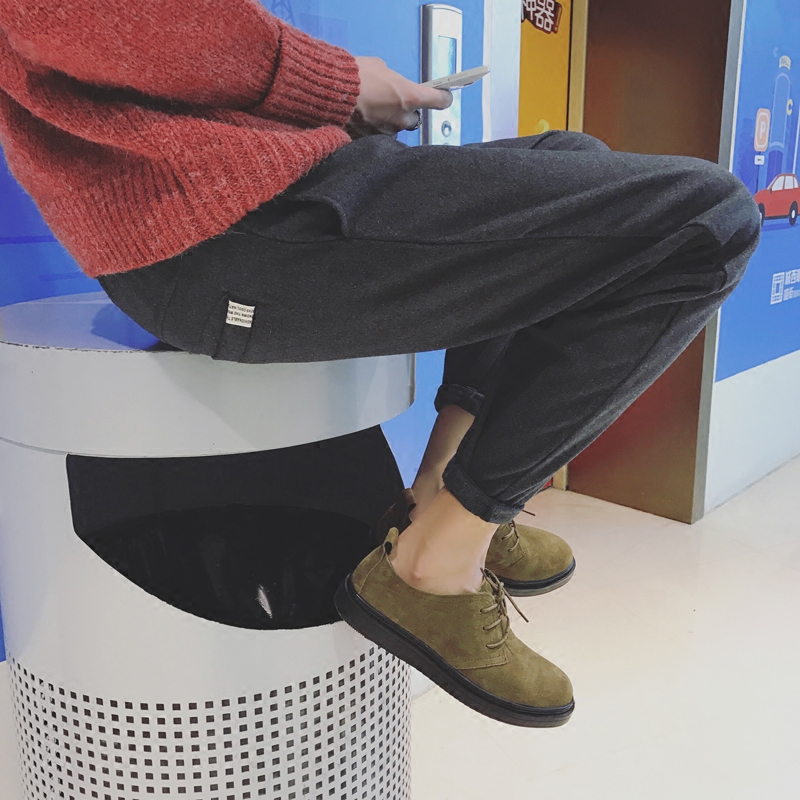 男裝韓版簡約毛呢加厚修身男士哈倫褲小腳休閑褲潮