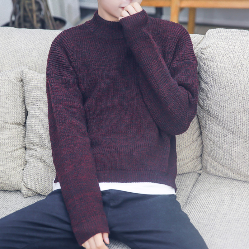 / 男裝港系純色休閑百搭冬季男士圓領針織衫韓版毛衣