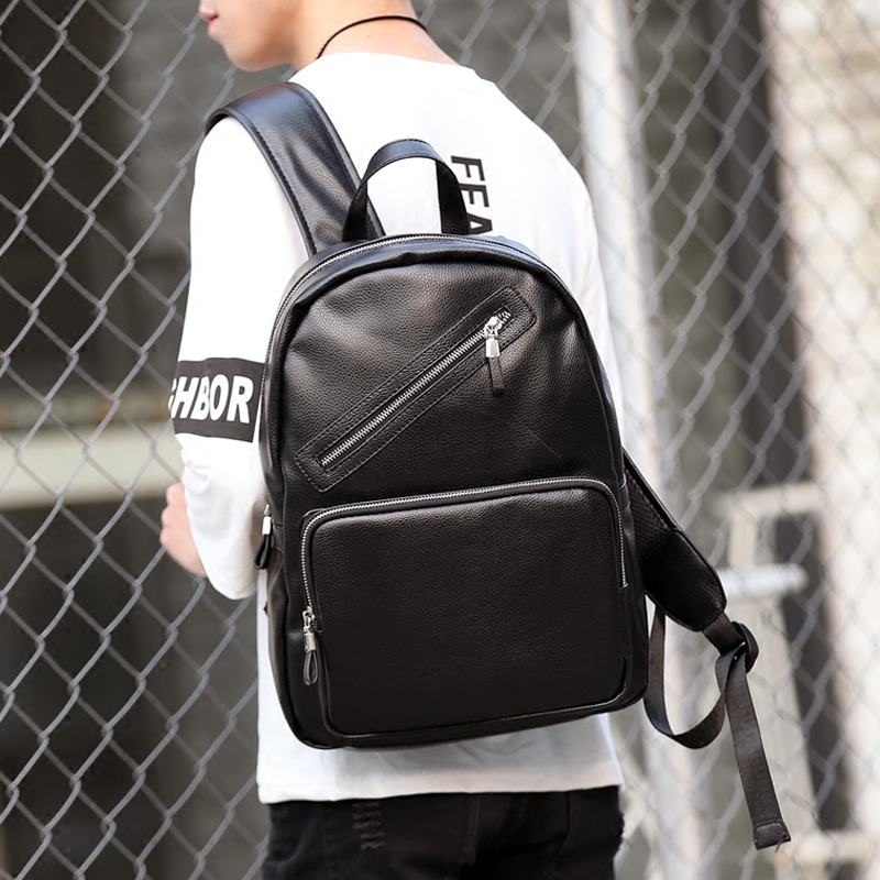 / 潮流英倫皮質雙肩背包休閑學生書包電腦包時尚街頭男背包新