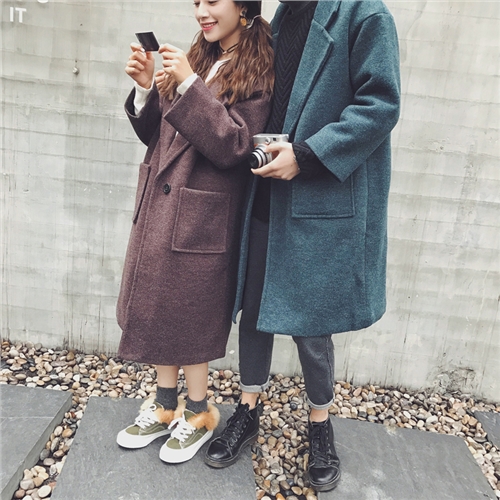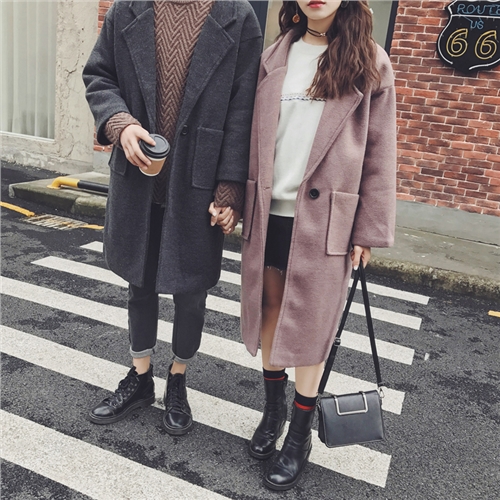 男裝新款港風精致中長款男女單排扣毛呢情侶大衣
