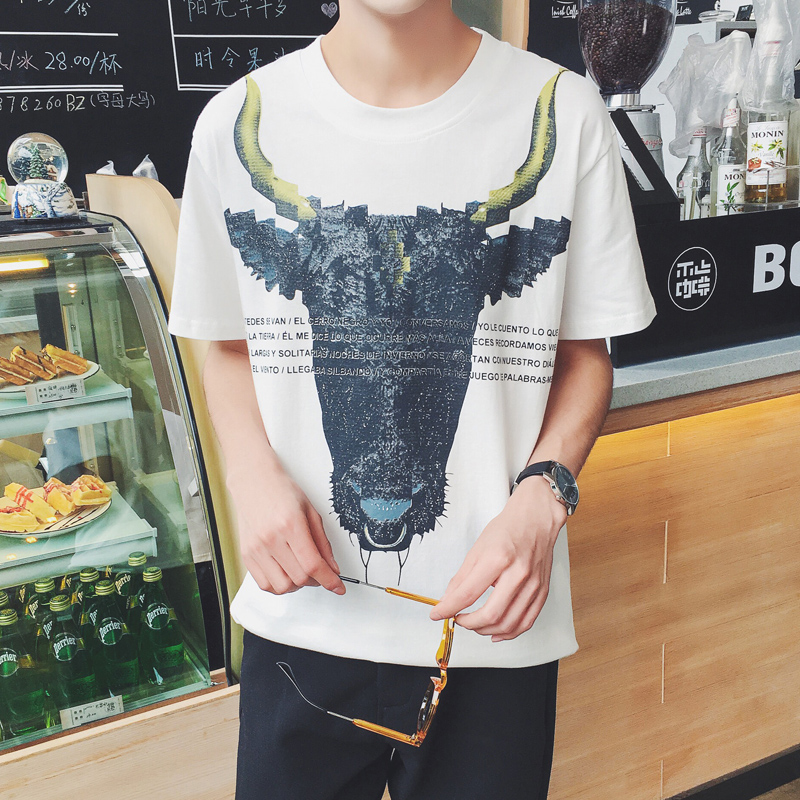 / 原創夏裝新款潮流韓版男士印花寬松短袖T恤衫